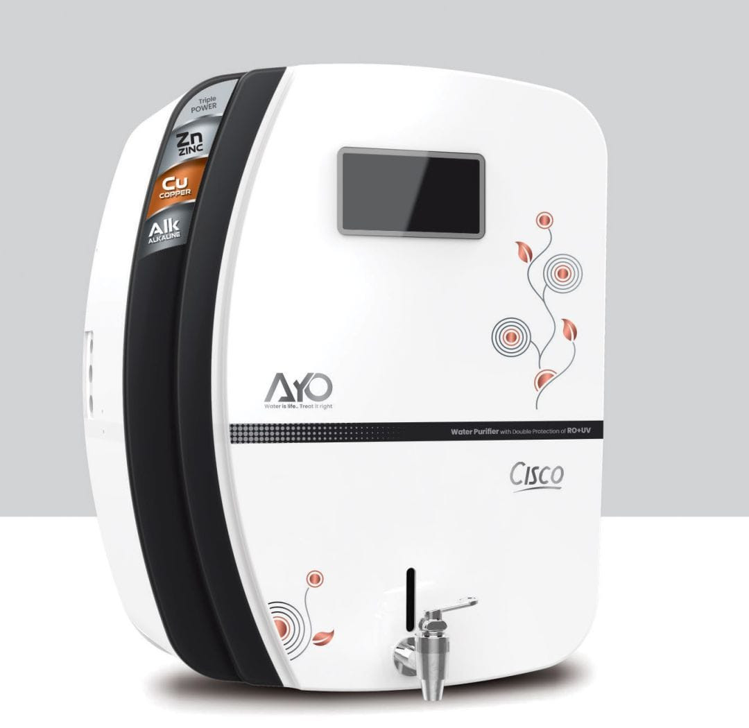 AYO Cisco White Model is a premium Alkaline RO Water Purifier with 7-stage advanced purification (RO + UV + UF + TDS Controller). Its stylish design, 12L storage, and mineral enrichment (Calcium, Magnesium, Zinc & Copper) ensure safe, tasty, and healthy water for your family every day.